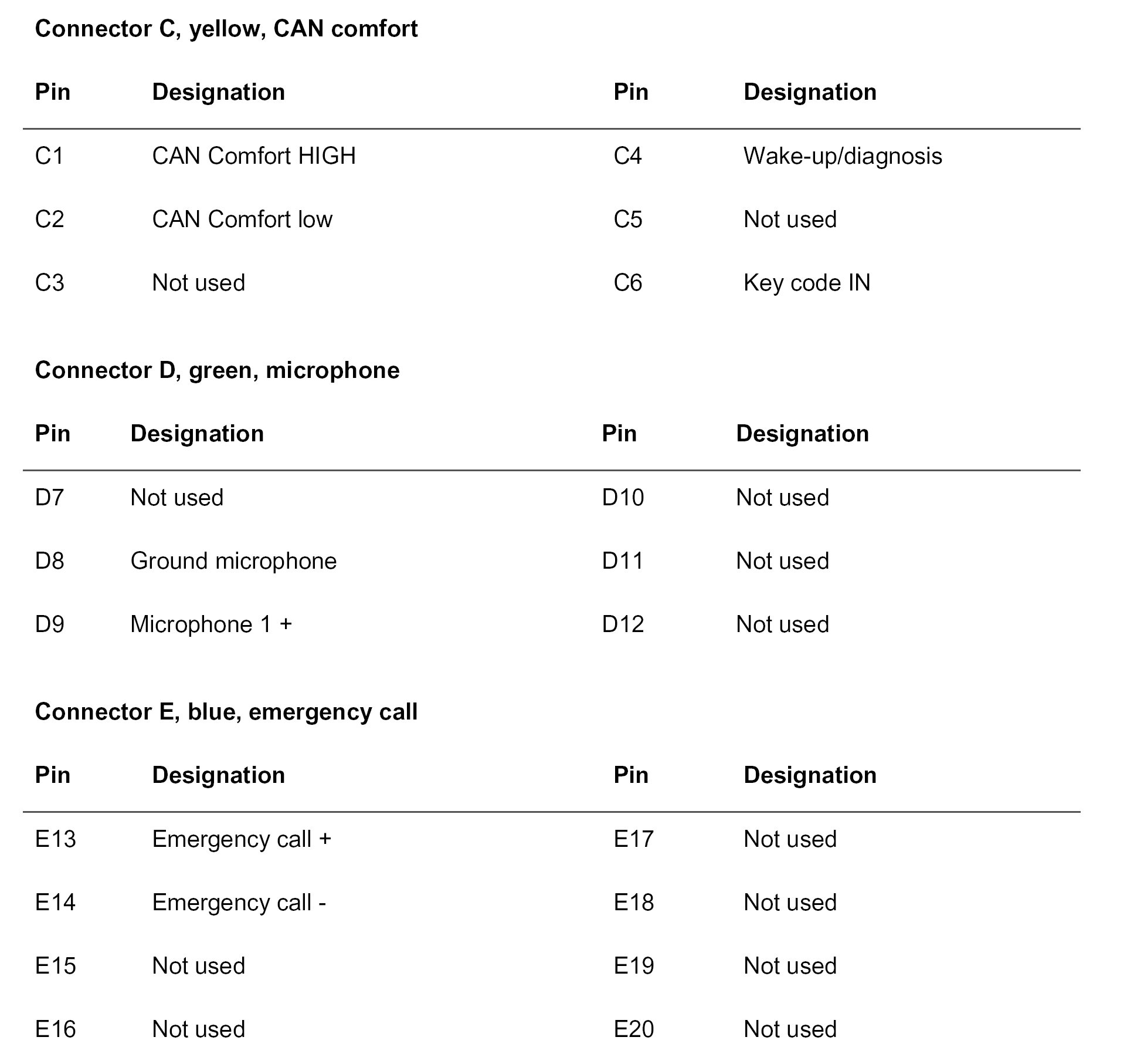 PCM2 Gateway Connector Assignment (Part 3):