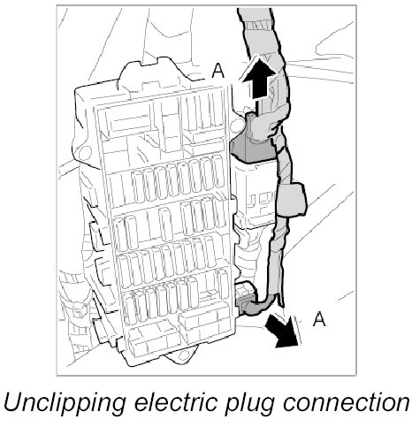 1. Unclip electric plug connection at the fuse box and move it aside.
