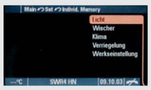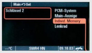 The individual memory allows extended vehicle settings to be made via PCM. These settings are individually assigned to the respective ignition key. Each time the key is inserted in the ignition lock, the stored settings are automatically activated via PCM.