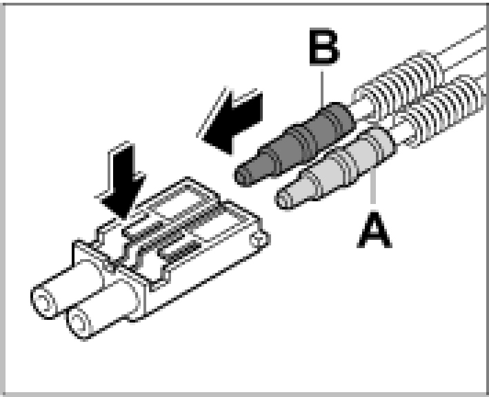 1. Insert the optical contacts -B- and -A- in the module until it engages audibly. Check the optical contacts for tightness.