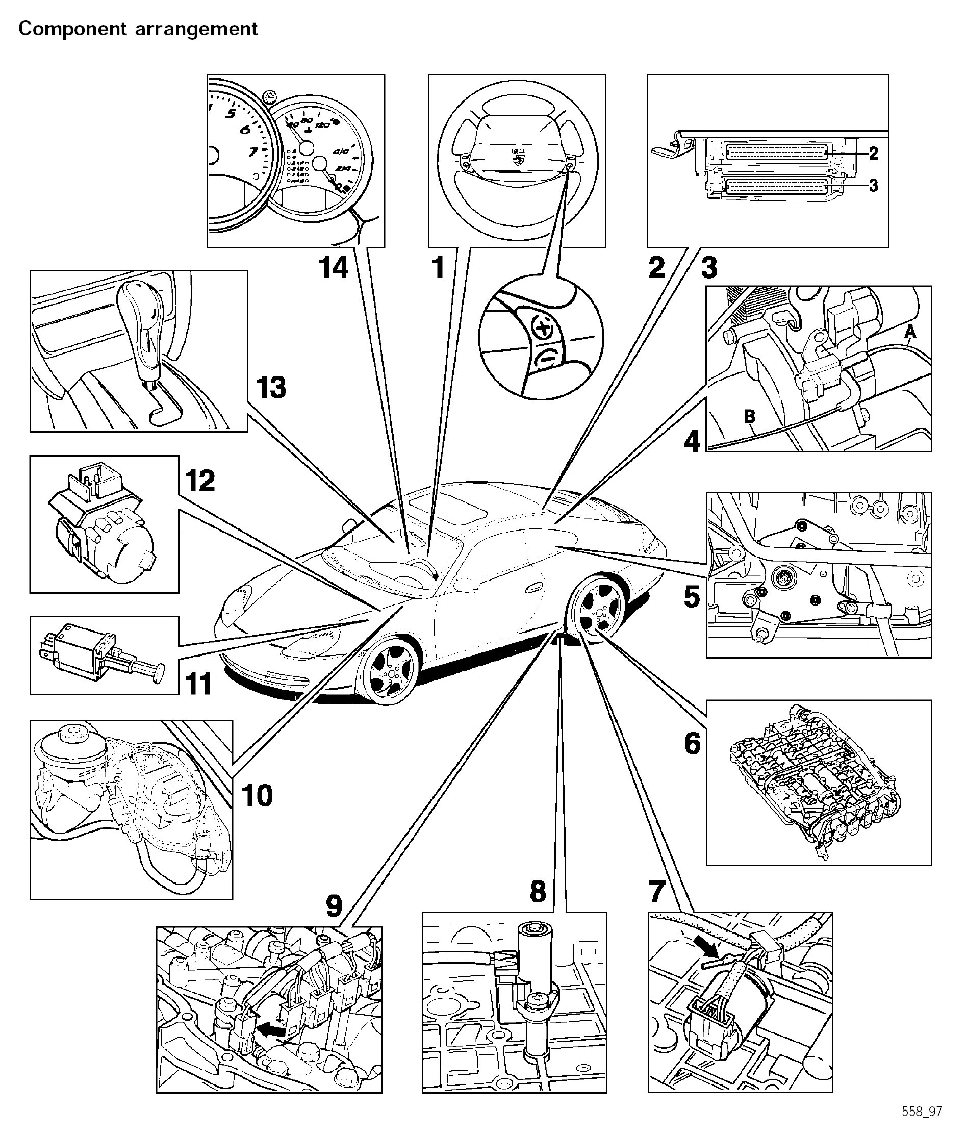 The Tiptronic control module is the information and command centre of the entire system. From a large volume of incoming information (measured variables), which are compared with stored driving and shifting programs, the Tiptronic control module selects the characteristic suitable for the type of driving and sends commands to the transmission to shift or not to shift.