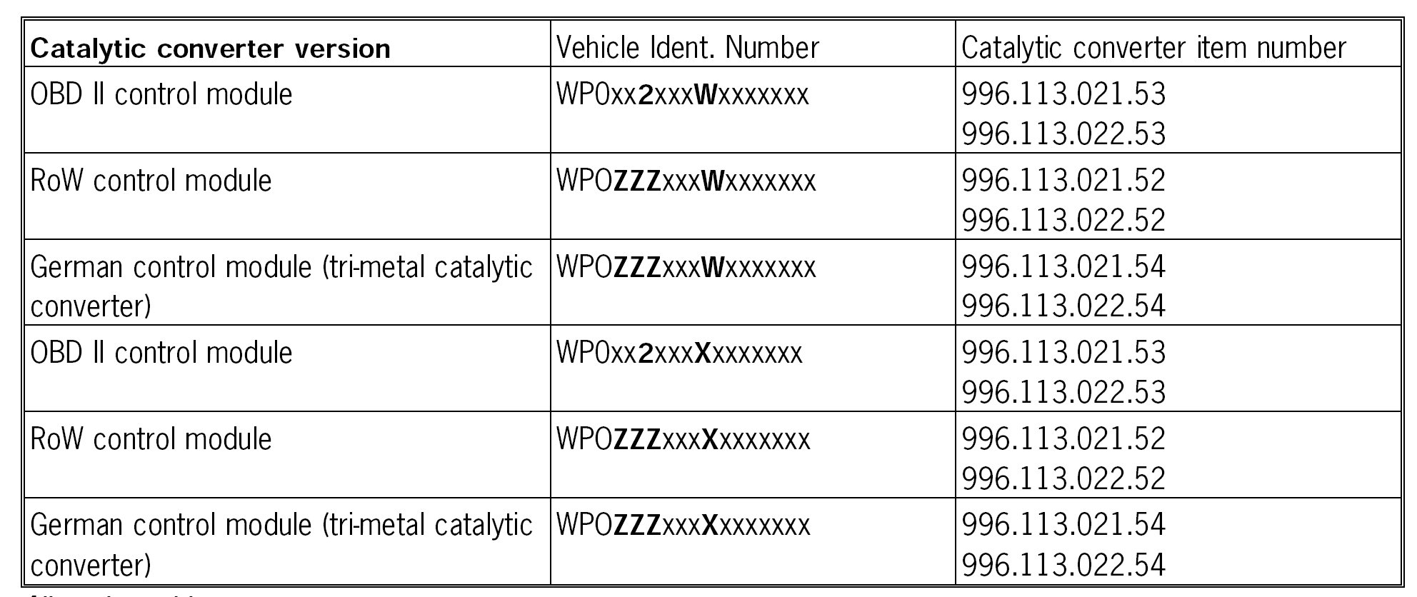 - Catalytic converter item No. corresponding to the catalytic converter version used