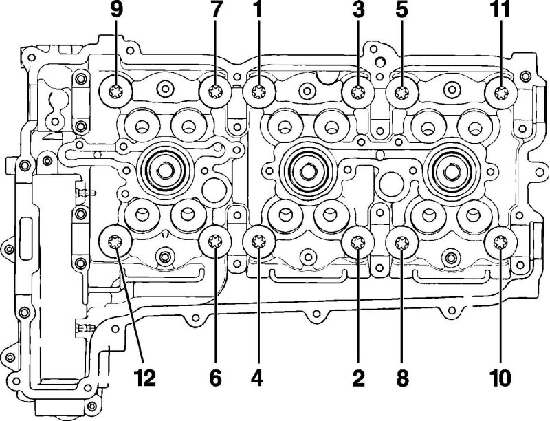 Cylinder head nut in accordance with tightening sequence: initial tightening M10 30 Nm (22 ft. lbs.) 1 Nm (thread and contact surface ft. lbs.)