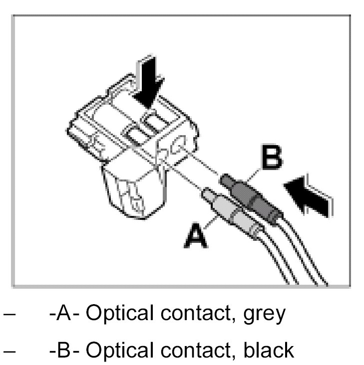 1. Insert the optical contact -B- in the connector until it engages audibly.