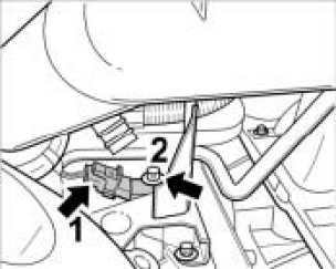 1. Mark and note the installation position of the knock sensor. Remove cable plug from knock sensor -1-. Unscrew fastening screw -2- and remove knock sensor.