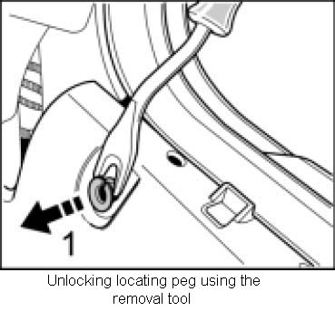 6. Push in the locating peg -1 - of the support and check it is seated correctly.