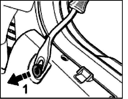 3. Unlock locating peg -1- of the support using the commercially available removal tool Disassembly tool, universal NR.21.