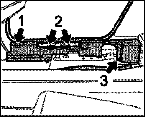 4. Unscrew fastening screws -2- and nuts -3- and carefully pull the support up and out of the retaining points.