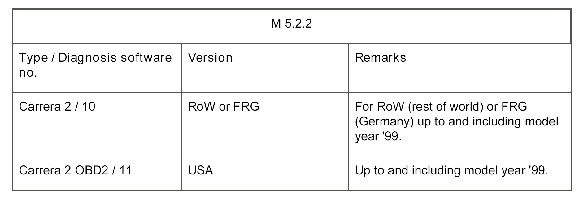 - To enable the Diagnosis Software No. to be completely tracked, the Software No. is listed in this chapter as of M 5.2.2.