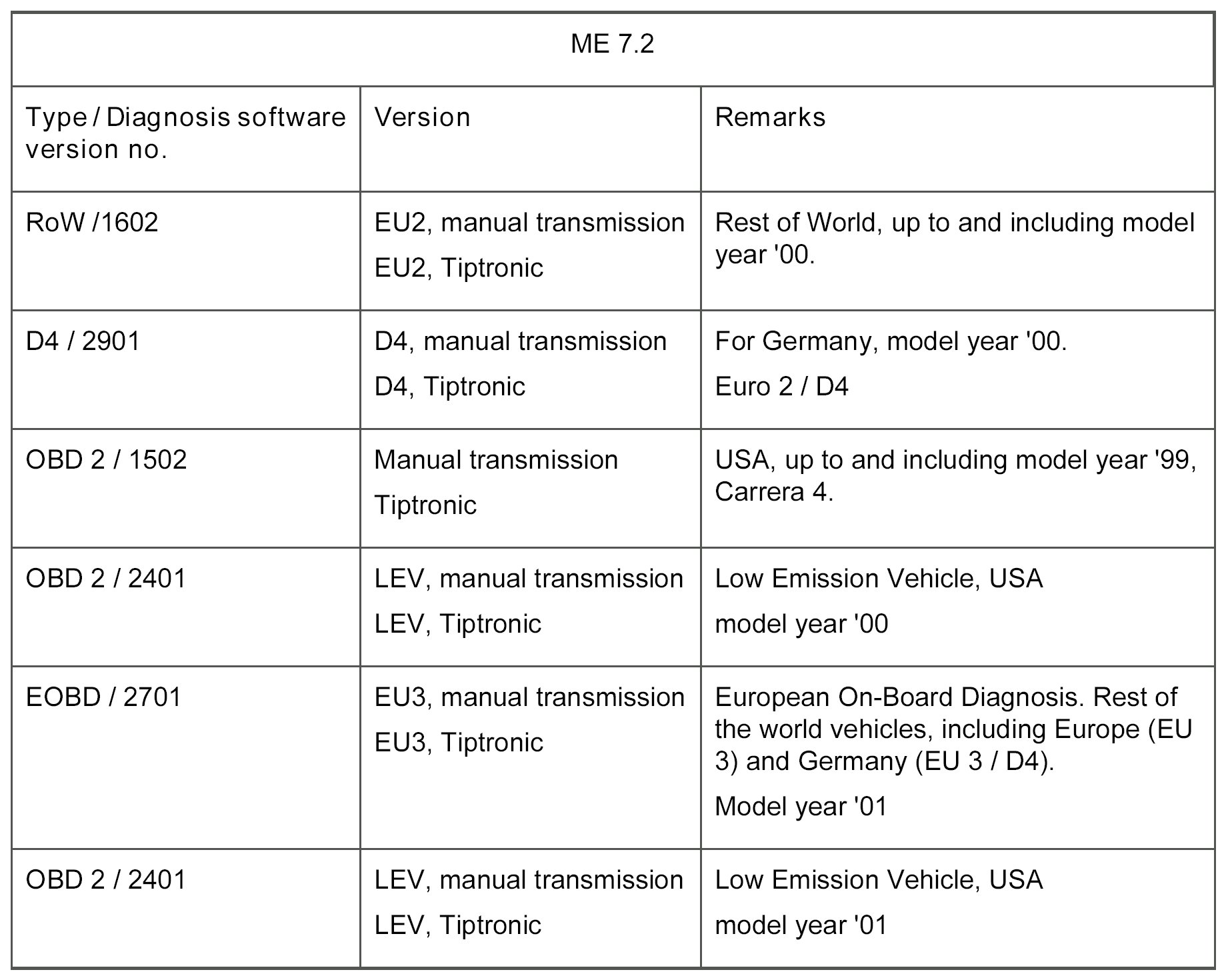 - If the DME control module from a different 911 Carrera (996) vehicle with ME 7.2 is being used, proceed as follows. As a check, the DME code and the immobilizer code of the vehicle in which the control module is being installed (NEW) and of the vehicle from which the control module has been removed (OLD) are required.