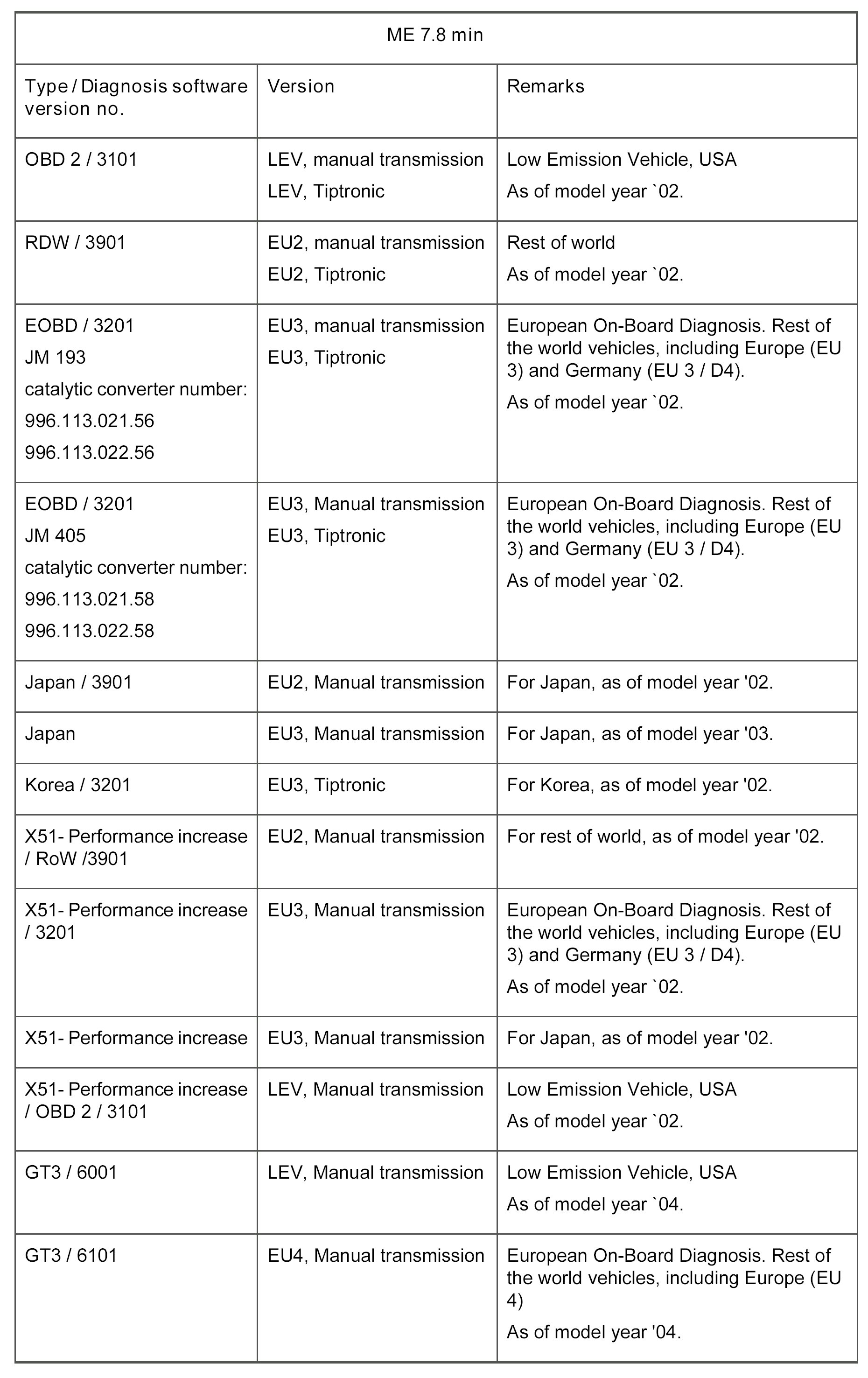 - A differentiation is made in the EU3 version under JM 193 and JM 405. This is due to the fact that the vehicles have different catalytic converters installed. The catalytic converter number must be read off and can be allocated to the correct software in the following table.