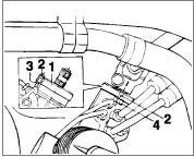 4. Then readjust the front wheel alignment, if necessary, until pin No. -2- in driver No. -1- and the lug on the steering gear housing No. -4- line up.