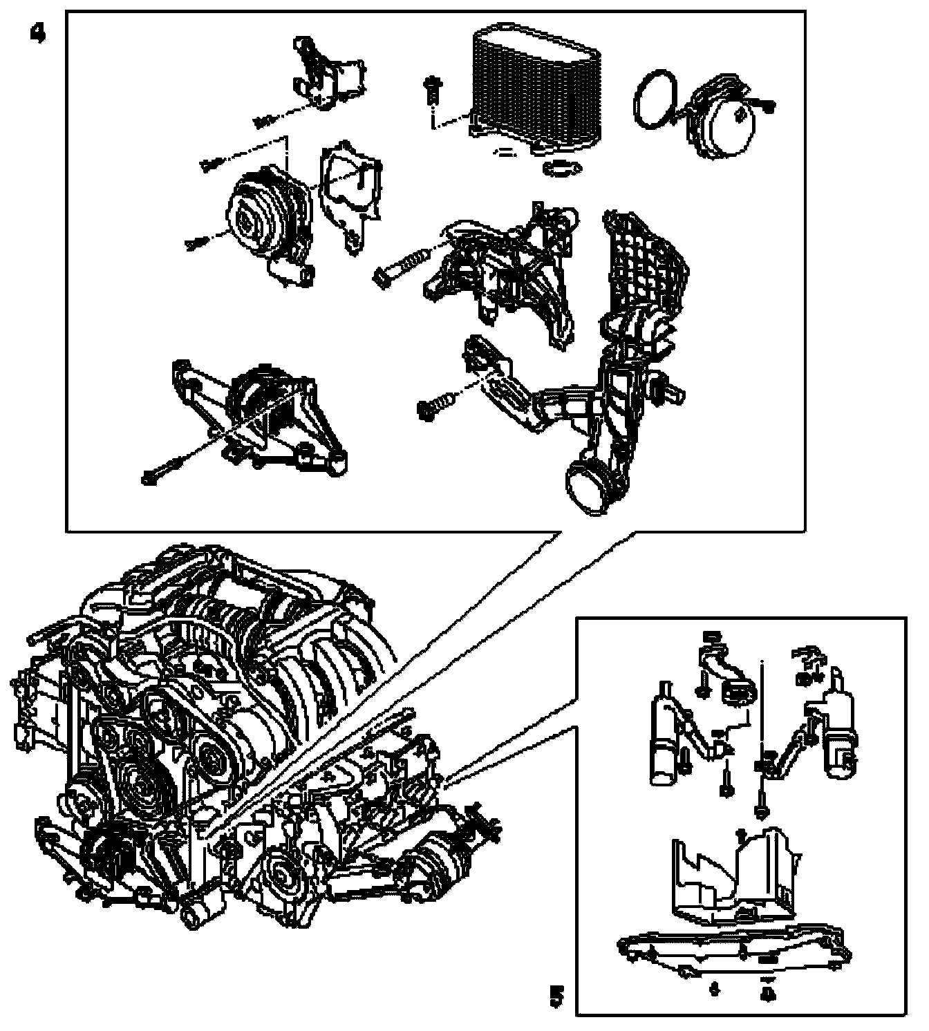 5. Disconnect cable plug -4- of engine-temperature sensor -5-.