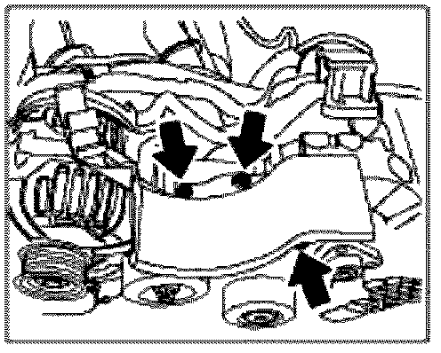 47. Remove brackets for oxygen sensor cables by unscrewing the five Torx screws (M6 x 12) -arrows-.