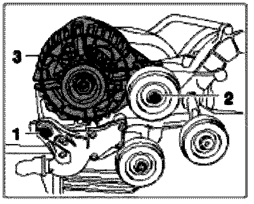 17. Remove power-steering pump with the lines by unscrewing the three Torx screws (M8 x 30) -3- and the Torx screw (M8 x 12) -2-.