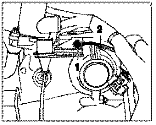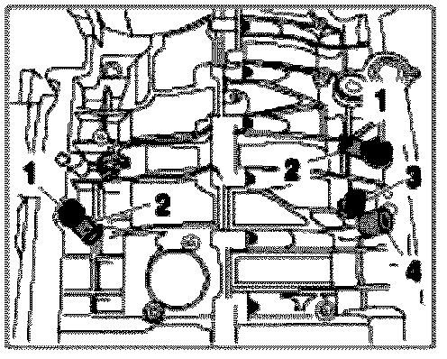 28. Remove knock sensors -2- by unscrewing one Torx screw (M8 x 35) respectively -1-. Mark the position of the electric connection for re-installation.
