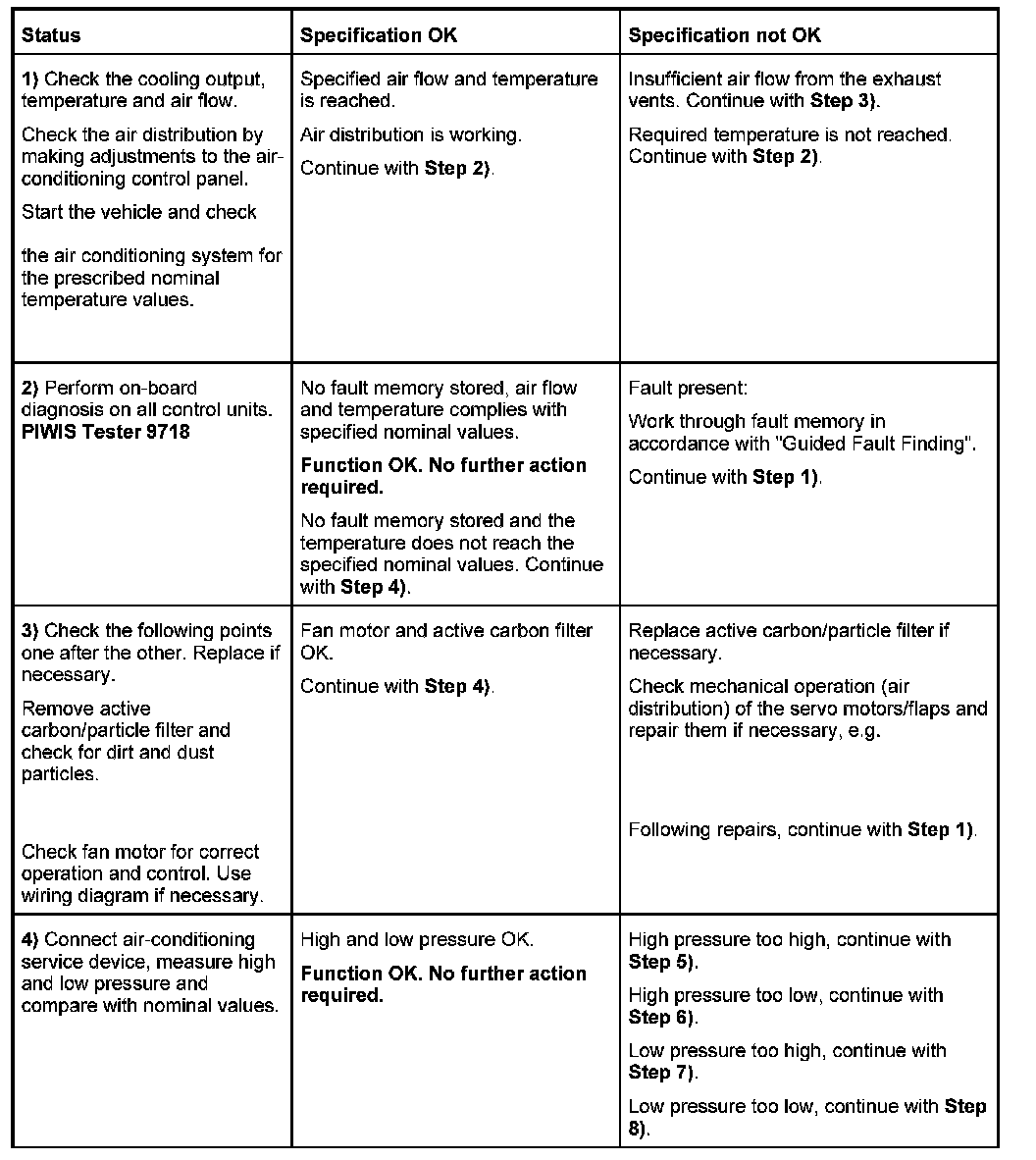 - The troubleshooting steps shown must be used if complaints are received about the cooling output of the air conditioning system.