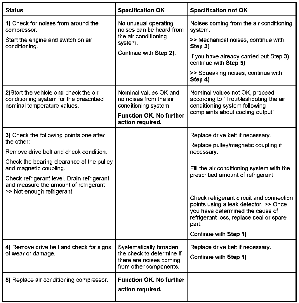 - The troubleshooting steps shown must be used if complaints are received about noises in the air conditioning system.
