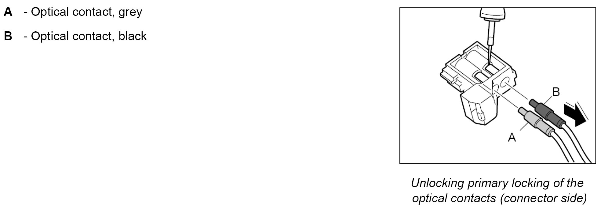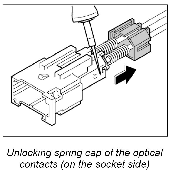 When exchanging the LWL, the optical contacts from the plug connection must be removed.