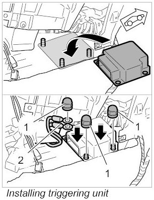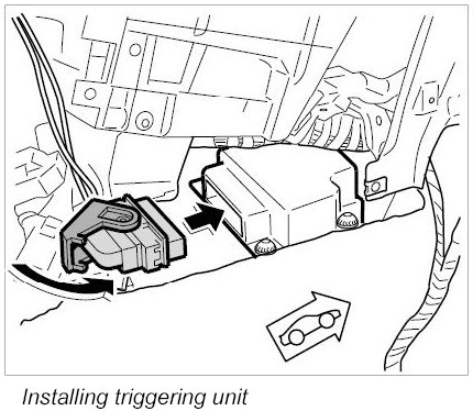 - The airbag triggering unit must not be removed with the connector still plugged in.