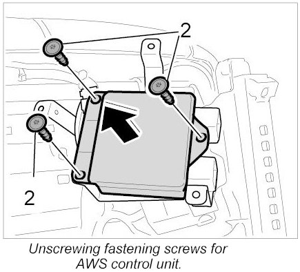 4. Unscrew the three fastening screws -2- of the AWS control unit and remove the control unit.