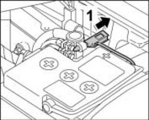 1. Pull off the B+ plug -1- for the main switch (battery disconnect switch) on the battery positive terminal.
