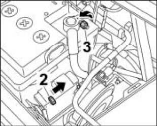 5. Position lead for the negative terminal on the battery again and screw it firmly into place -3-. Tightening torque 3.5 ftlb.