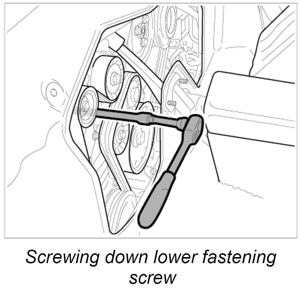 3. Unscrew lower fastening screw -4- through the rear wall cover opening using a ratchet spanner and an extra long extension.
