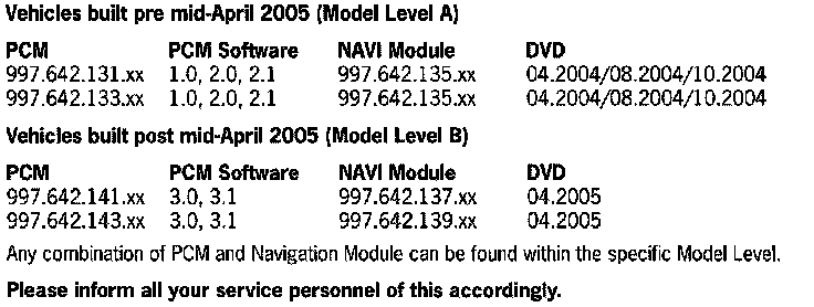 Since approx. mid-April 2005 a new system level software release (Model Level B) was introduced as standard equipment for PCM 2.1 and DVD navigation unit. This release includes changes to both the PCM2.1 head unit hardware and the DVD navigation unit hardware as well as the software for both components.