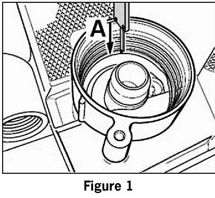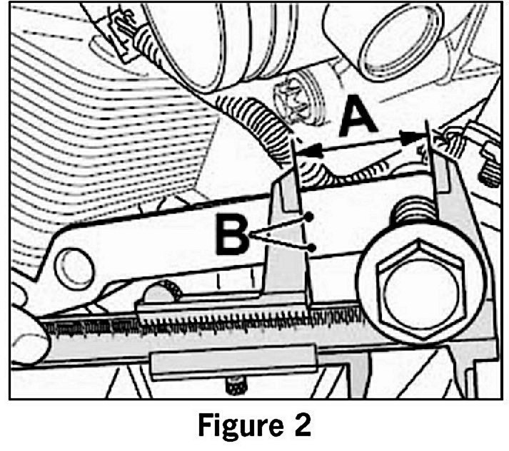 1.3 Measure the dimension from the face of the oil filter flange to the base of the threaded bore using a caliper gauge (Figure 1, arrow A). Figure 1 is enlarged to improved clarity.