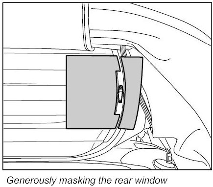 - Generously mask the rear window and convertible-top fabric close to the soldering area