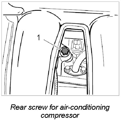 3. Unscrew rear Torx screw for air-conditioning compressor (M8 x 120) -1- between the pipes of the intake system.