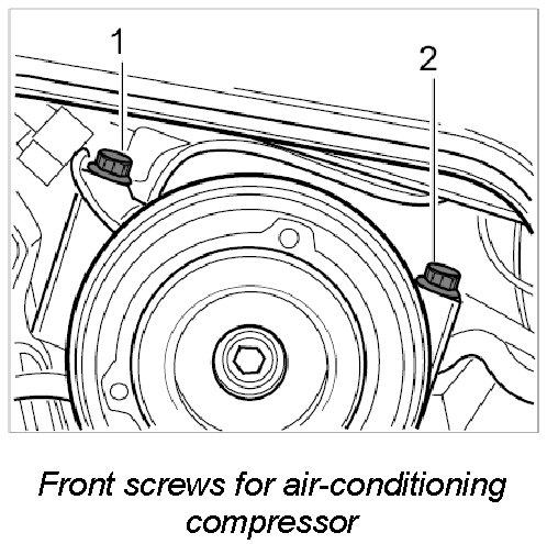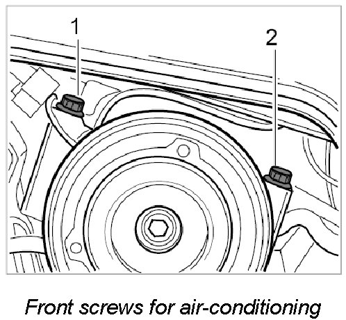 4. Unscrew front Torx screws for air-conditioning compressor (M8 x 90) -1- and -2-.
