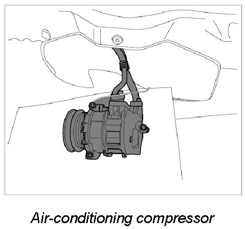 INFORMATION: After removal, place the air-conditioning compressor on a suitable protective support (e.g. foam, neoprene, etc.).