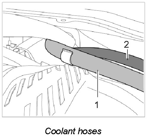 6. Unclip refrigerant hoses -1- and -2- between body and intake-air distributor.
