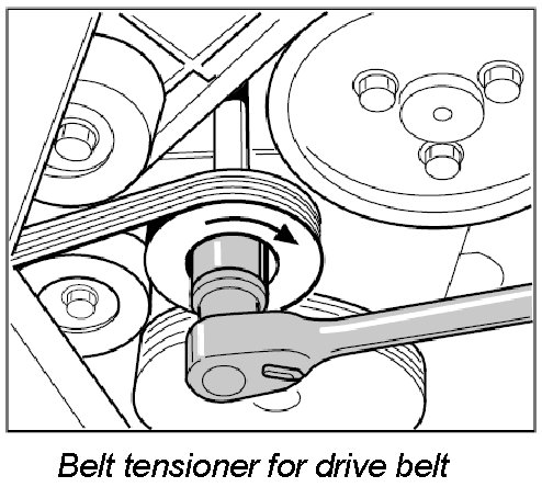 12. Turn the tensioning roller clockwise using a ring wrench (a/f 24), position the drive belt and then tension it.