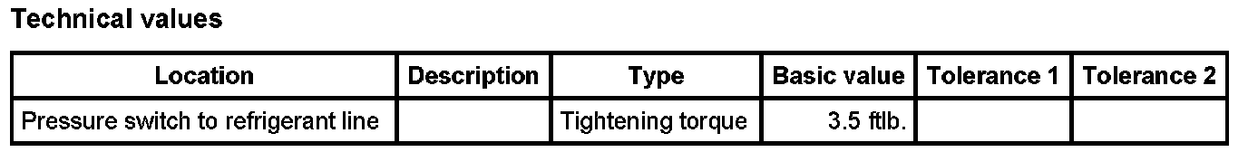1. Screw pressure switch onto refrigerant line and tighten with an open-ended wrench. Counter with a second open-ended wrench. - Tightening torque: 3.5 ft. lbs.