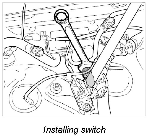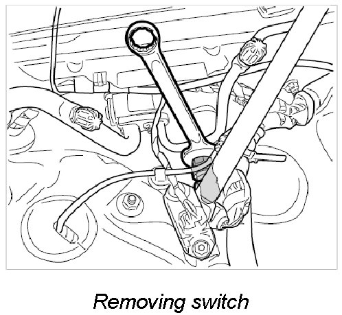 The pressure switch is located in the radiator tank, right side in the direction of travel, under the cowl panel cover.
