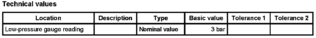 - Do not allow low-pressure gauge to exceed - Nominal value: 3 bar