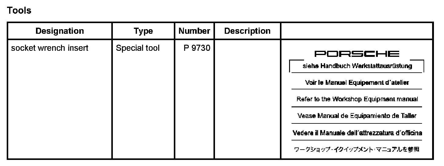 Use special tool (socket wrench insert) P 9730 -A- together with a torque wrench -B- to loosen and tighten the tie rod lock nut(s). The tightening torque of 50 Nm (37 ftlb.) for the tie rod lock nut(s) corresponds to a value of approx. 32.5 Nm (24 ftlb.) when using a socket wrench insert P 9730.