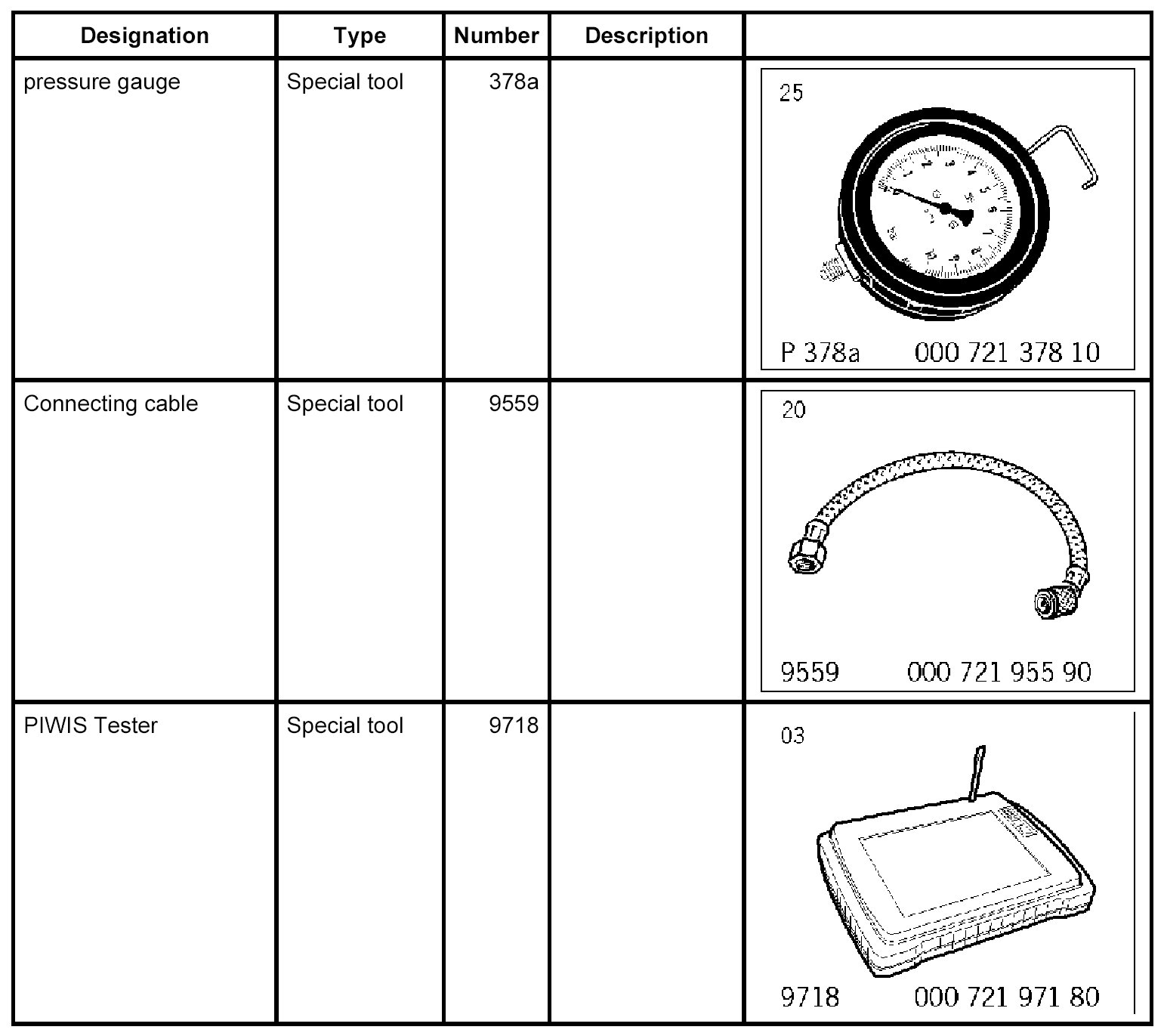 12. Checking the engine at idle speed: connect the pressure gauge 378a as described above and start the engine. Switch off the engine after reading the fuel pressure.->Fuel pressure - idle speed: 3.8 bar+/-0.2 bar