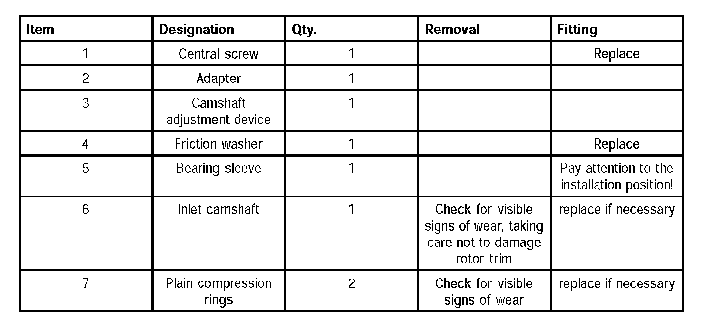 ^ The identification on the bearing sleeve should point towards the camshaft (see illustration).