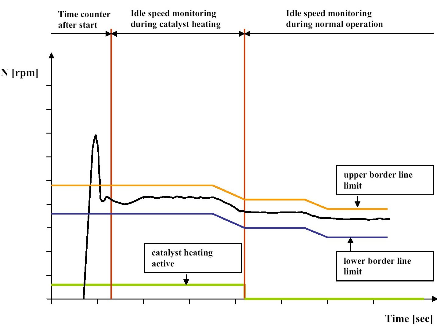 The following chart shows the working principle of the idle speed monitoring:
