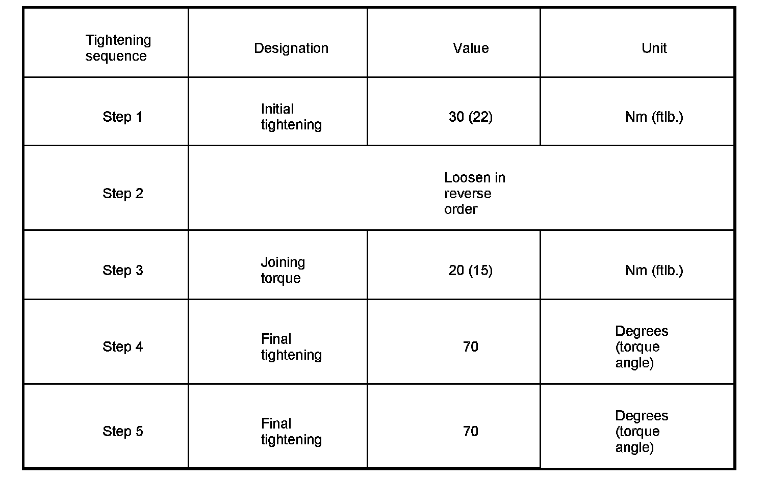Initial tightening 15 Nm (11 ftlb.)