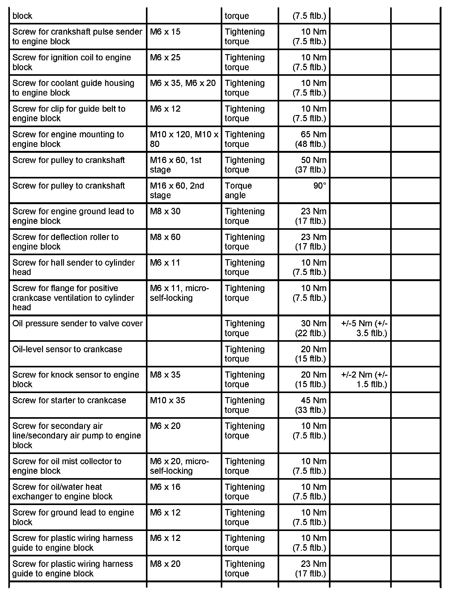Tightening torque 23 Nm (17 ftlb.)