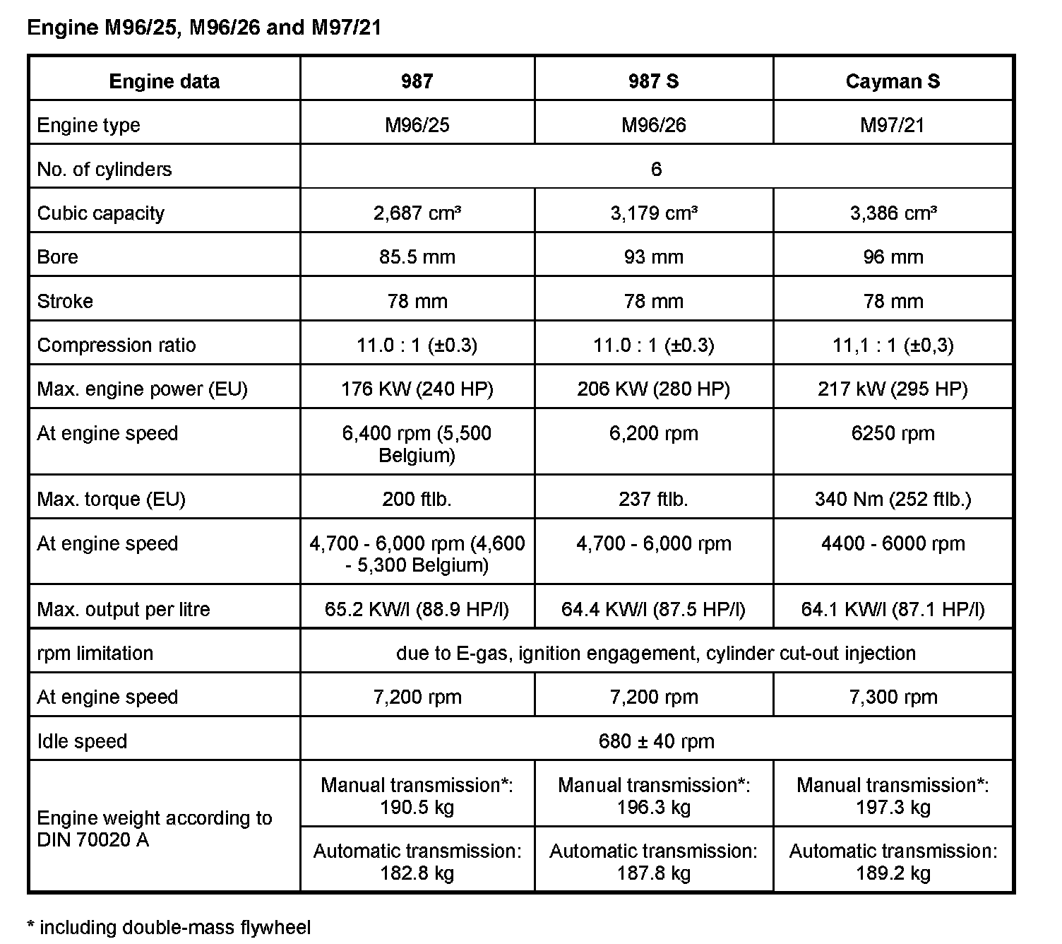 WM 1001TW Technical data, engine