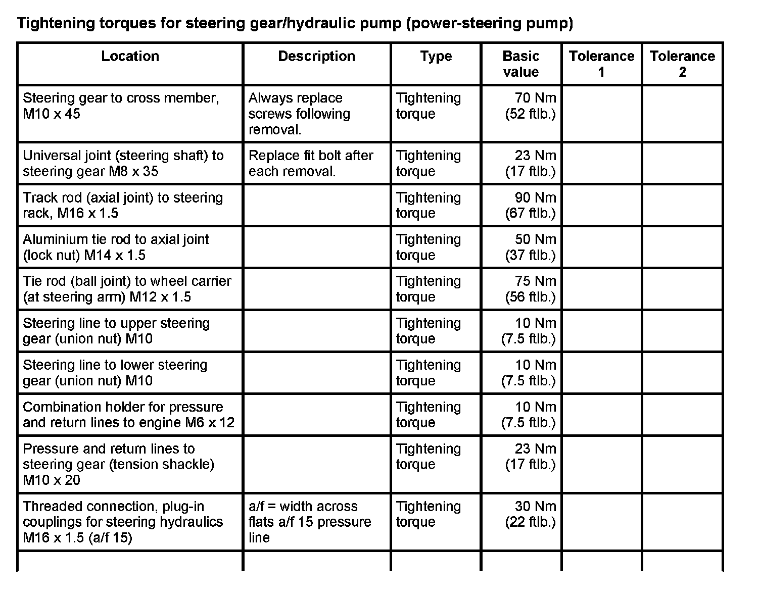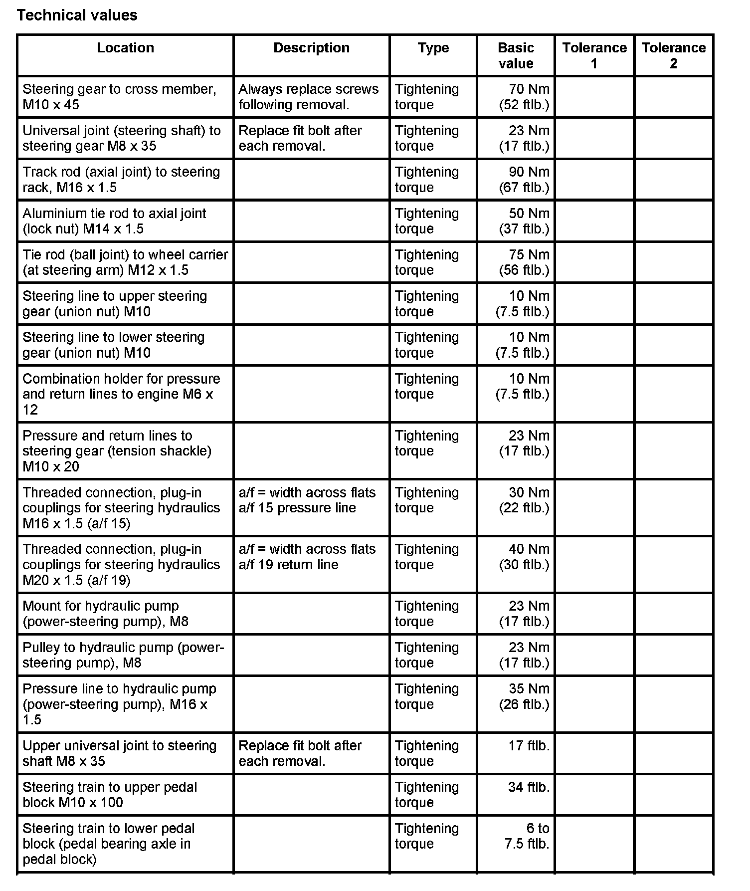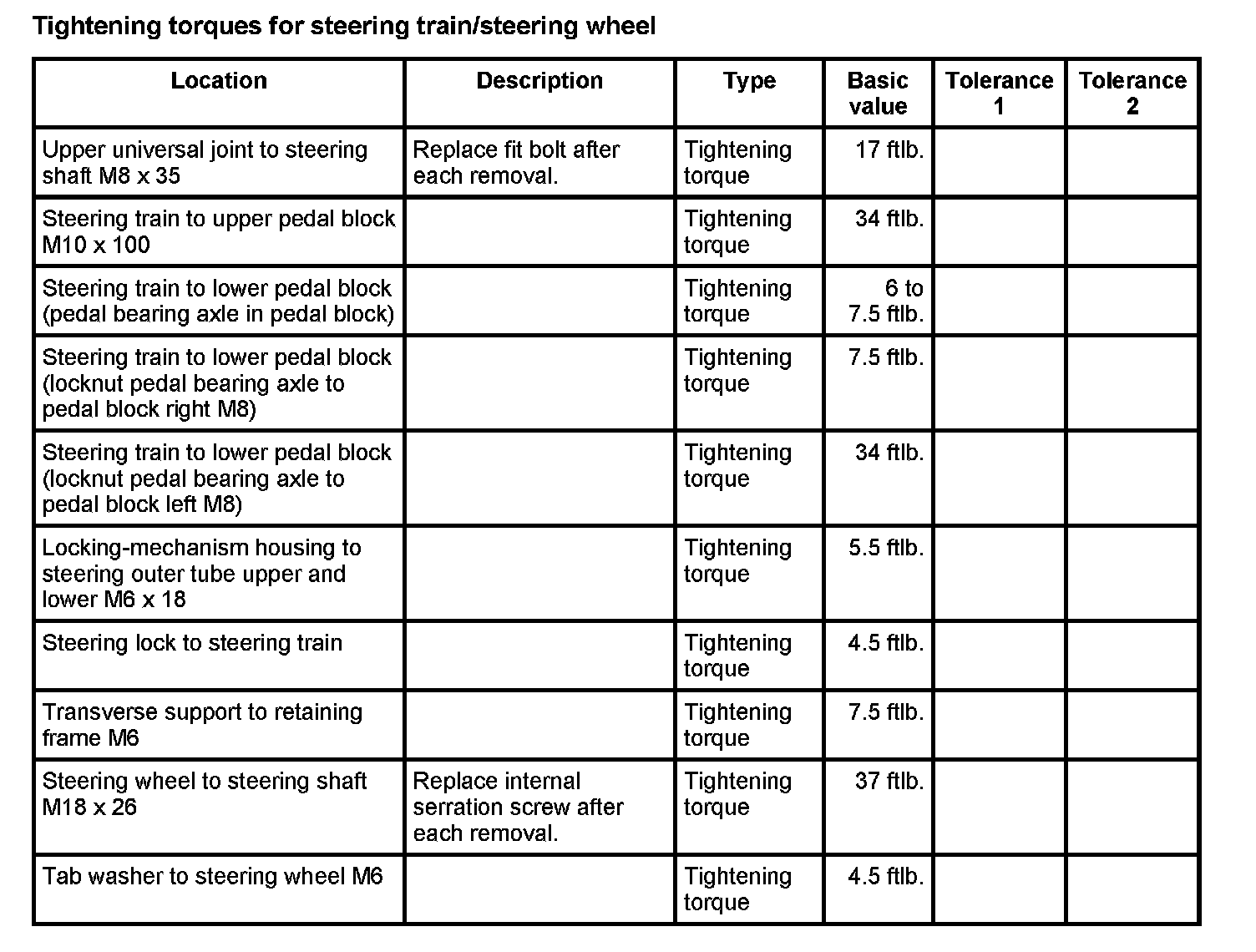 WM 4800TW Tightening torques for
