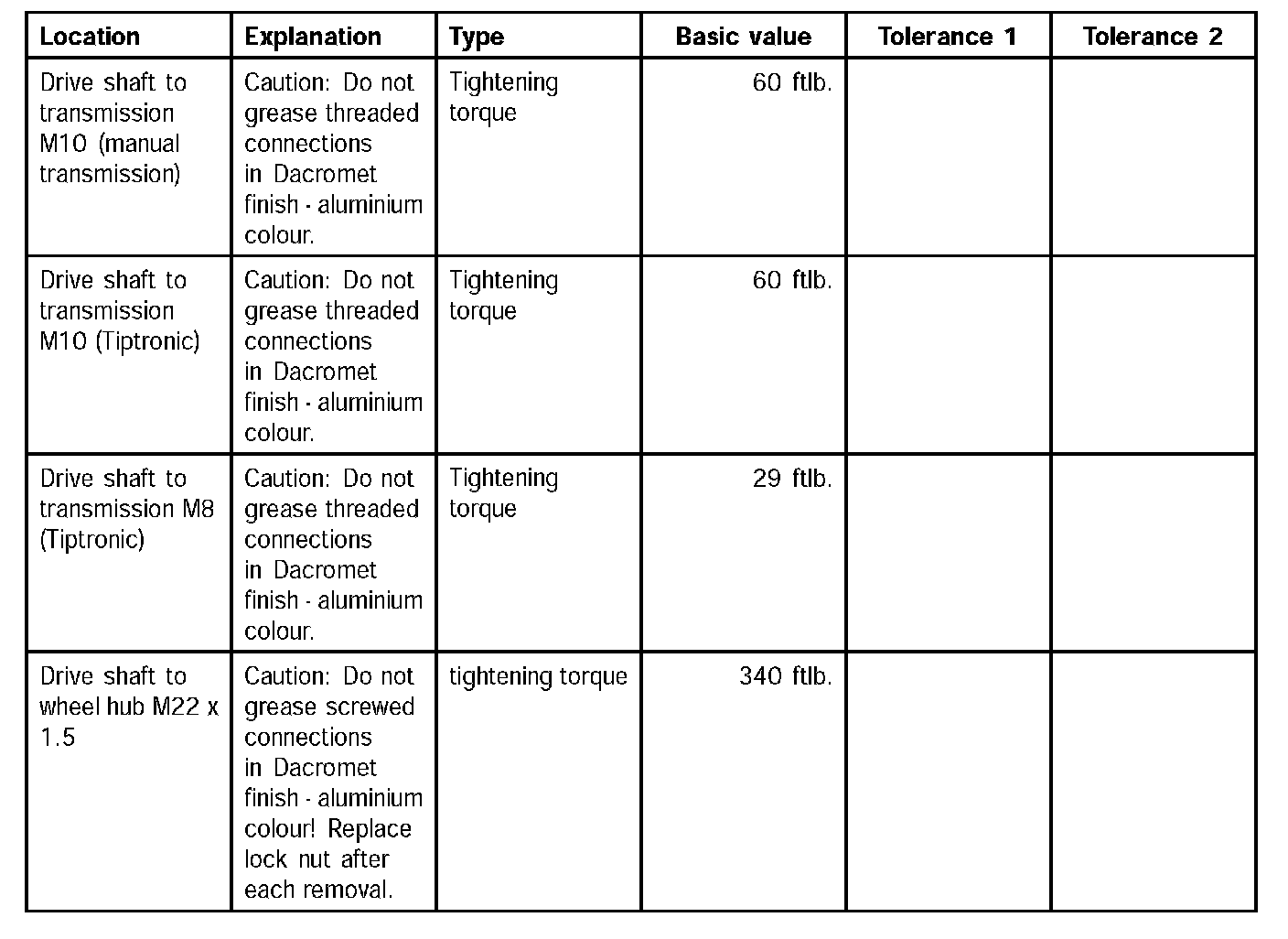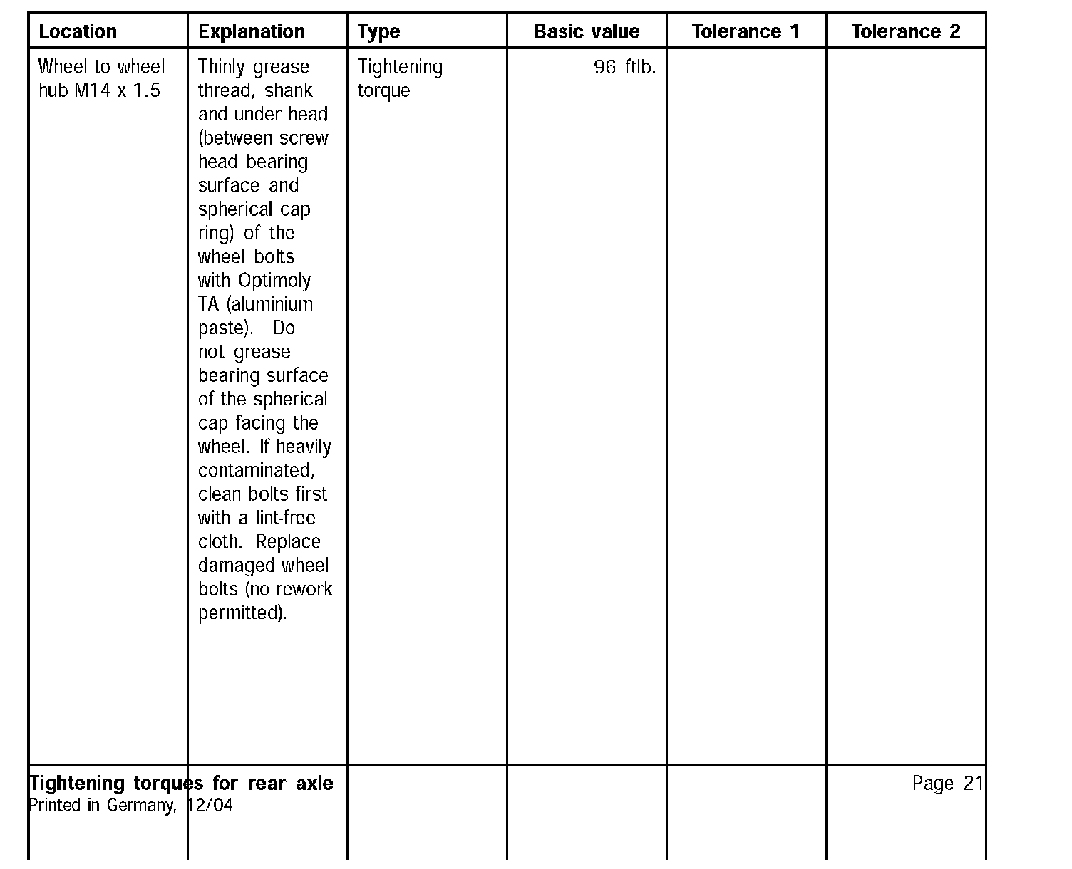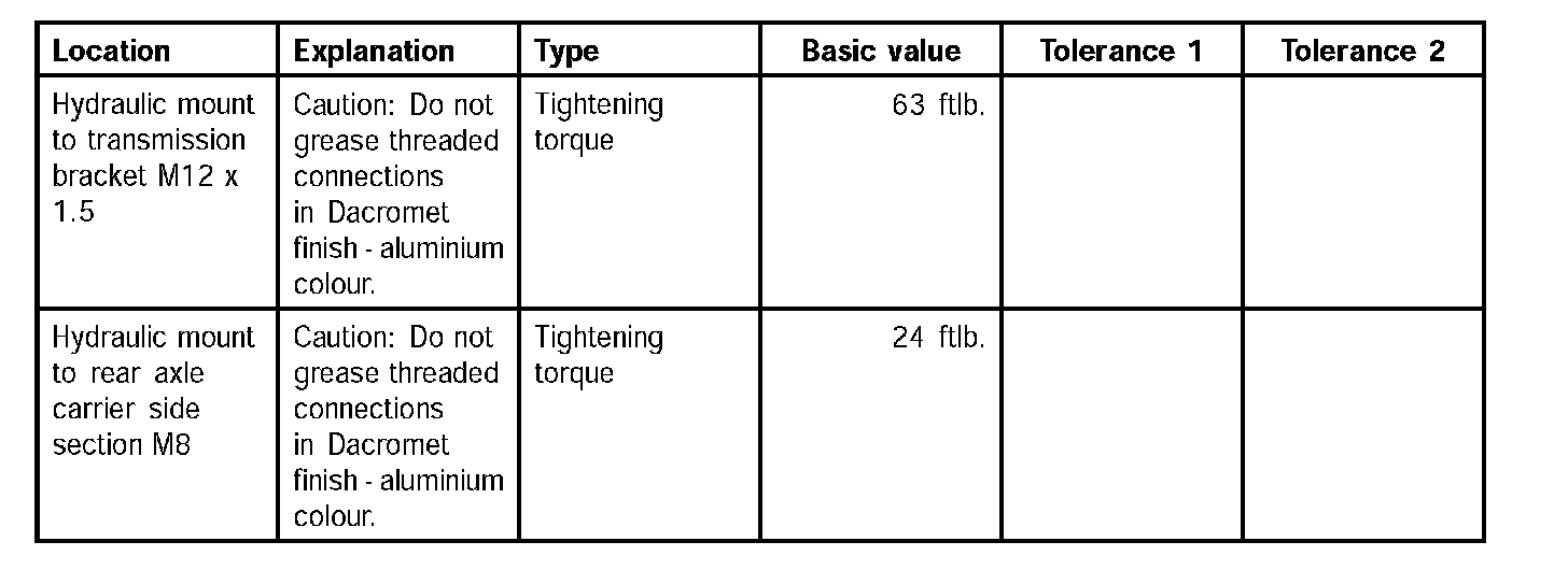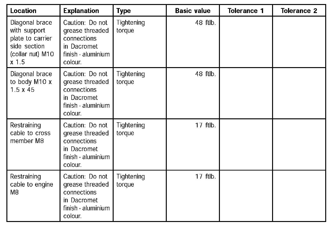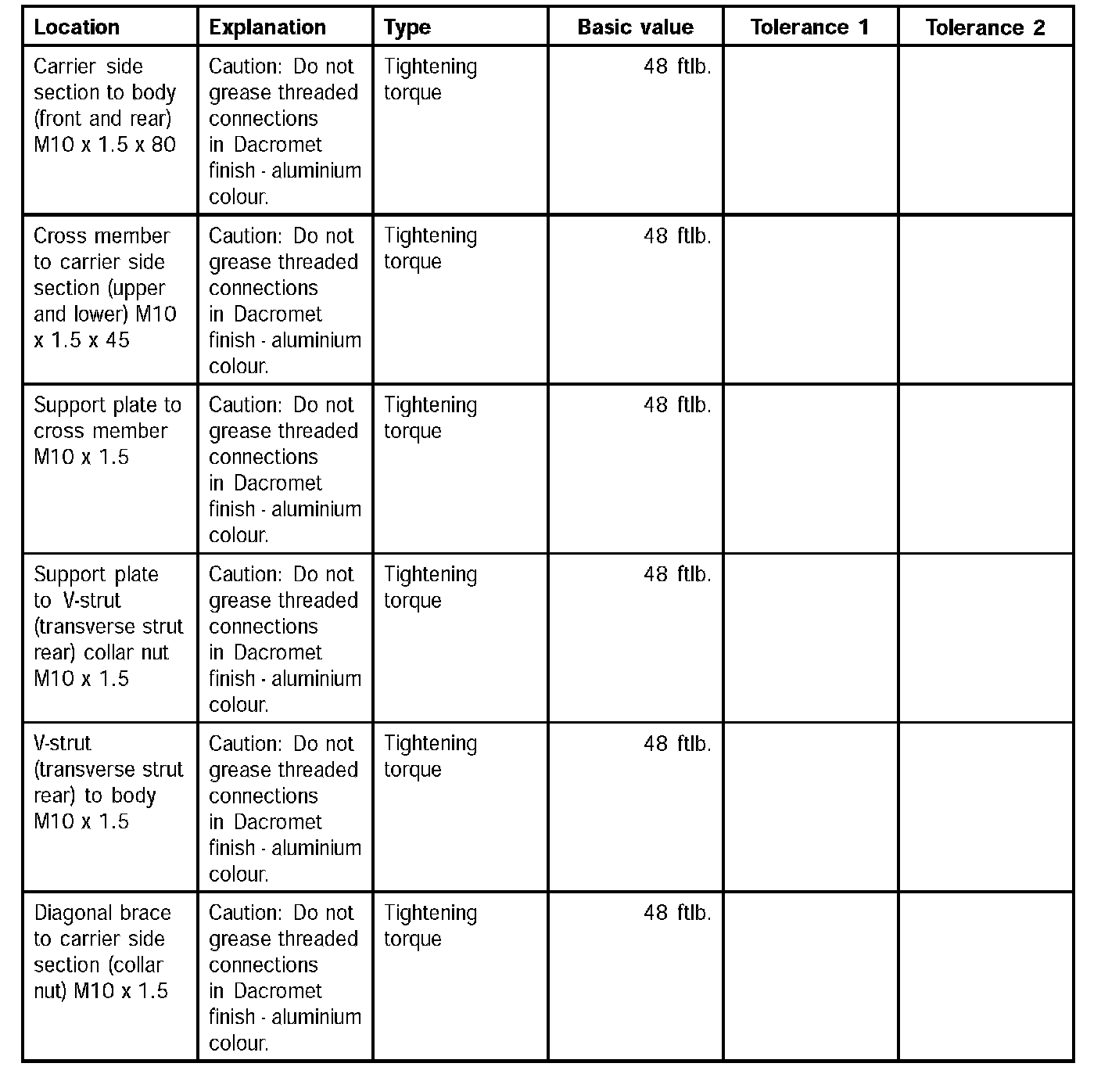 TIGHTENING TORQUES FOR REAR AXLETightening torques for carrier side section/cross member