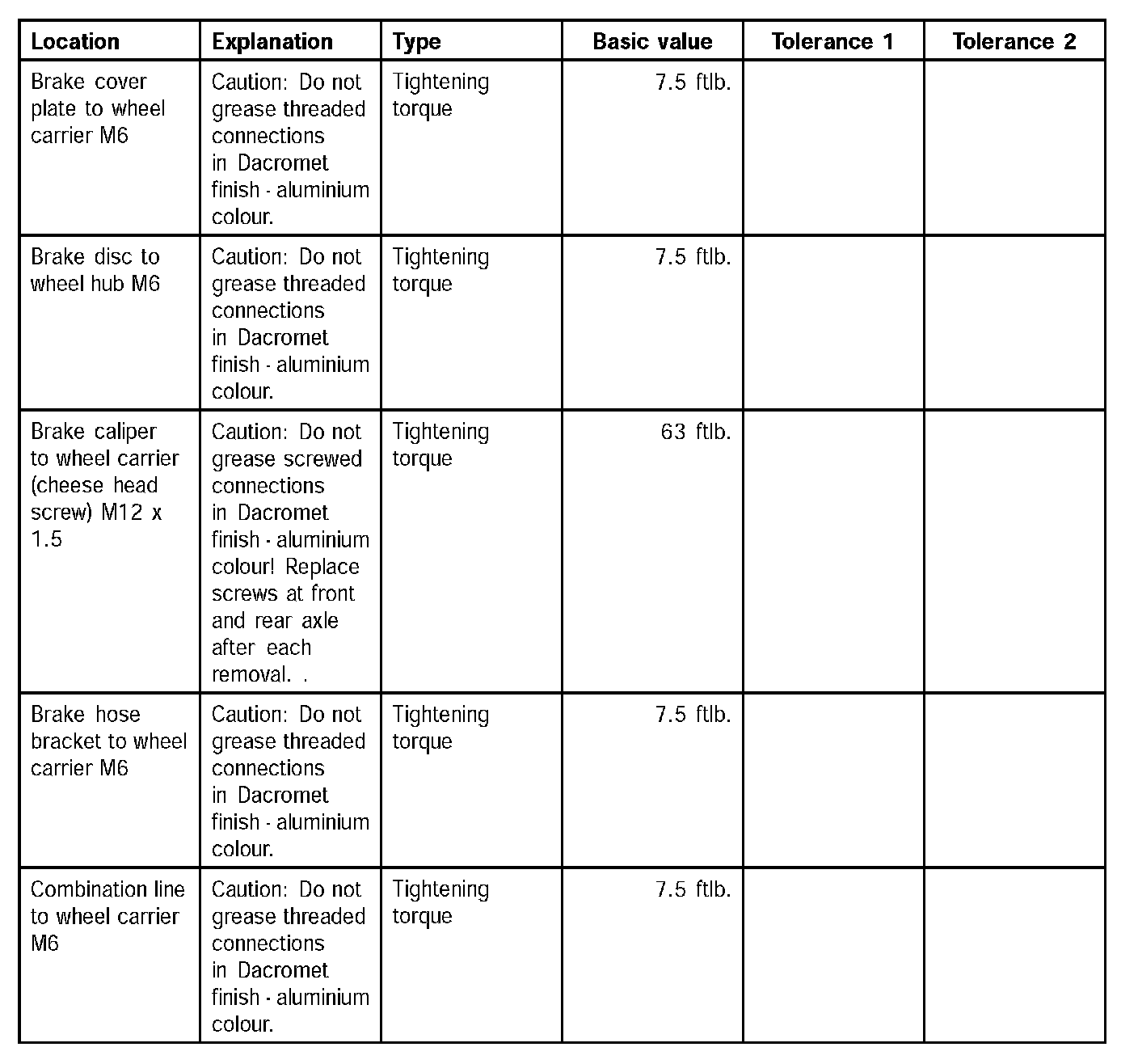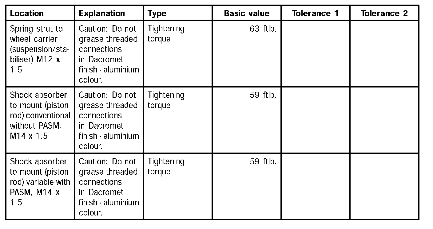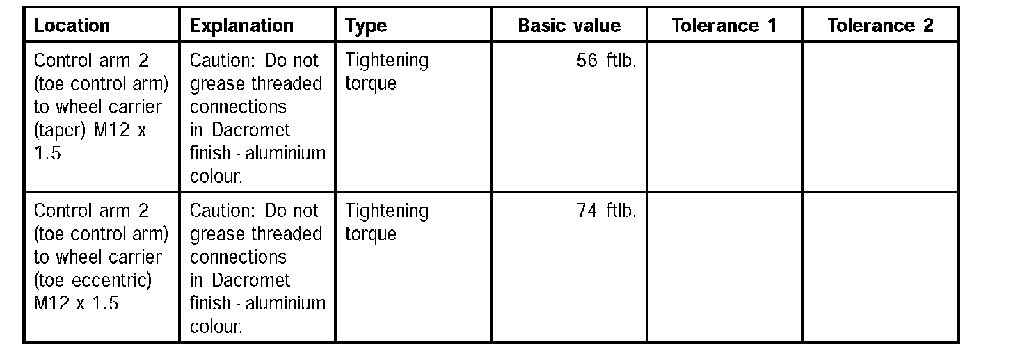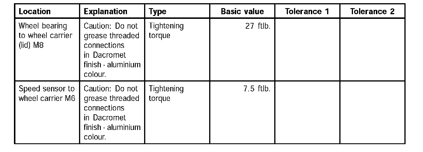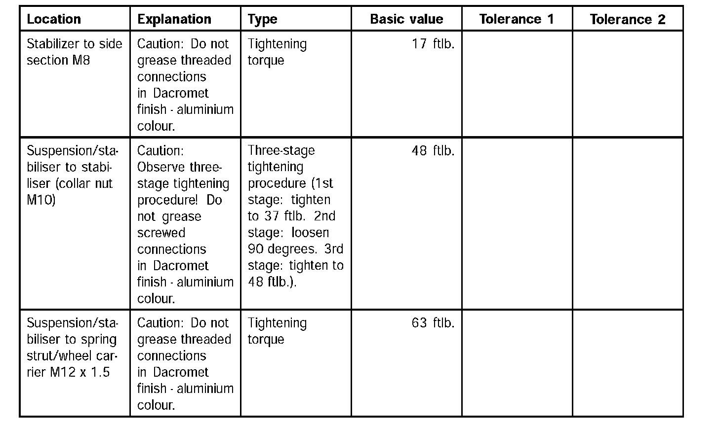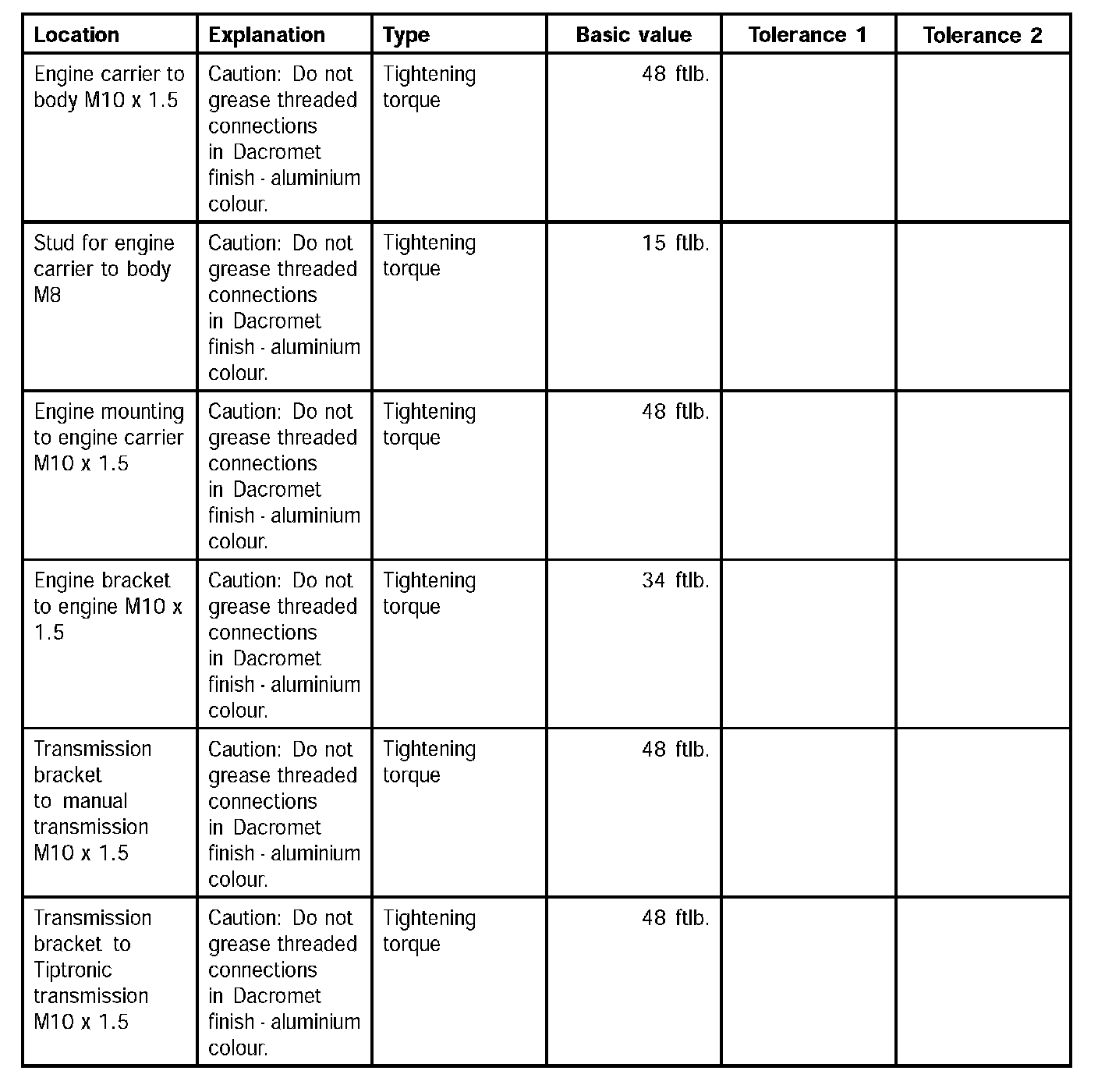 TIGHTENING TORQUES FOR REAR AXLETightening torques for carrier side section/cross member