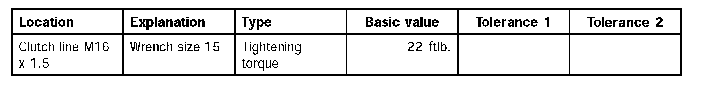 Tightening torques for plug-in couplings for clutch hydraulic system